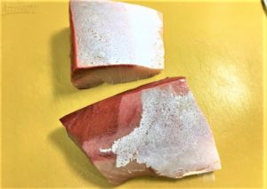 1.買ってきた短冊のぶりをきれいに洗い、キッチンペーパーで水気を拭き取ります。