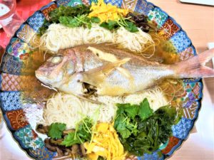 13.大皿の真ん中に鯛、