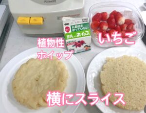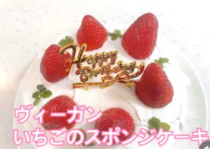 基本のビーガンスポンジケーキを豆乳生クリームといちごでトッピングして