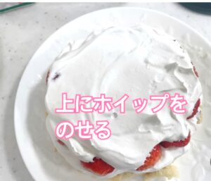 4.3の上にスライスしたスポンジケーキをのせてホイップをトッピング