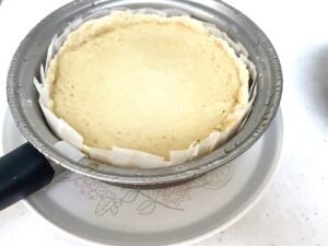 7.4の中フライパンに入れる。底をたたいてトントンと空気抜きをする。