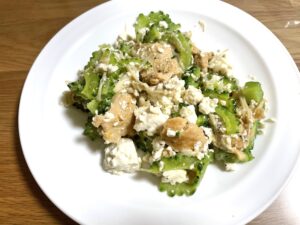 あっさりと美味しいゴーヤチャンプルーの出来上がり。